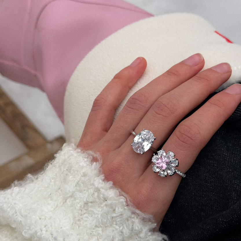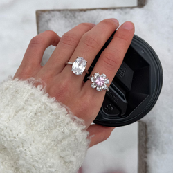 Каблучка розмірна у вигляді квітки з цирконом, виготовлена з ювелірної сталі з додатковим покриттям родію