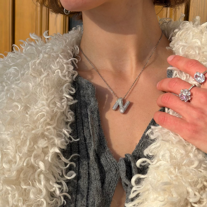 Підвіска Літера в срібному кольорі з фіанітами, в комплект входить ланцюжок + літера на вибір .