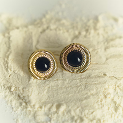 Вінтажна модель сережок з чорною вставкою, тип застібки гвоздик