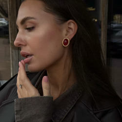 Овальні сережки у вінтажному стилі золотого кольору зі вставками червоними елементами виготовлені з міді.