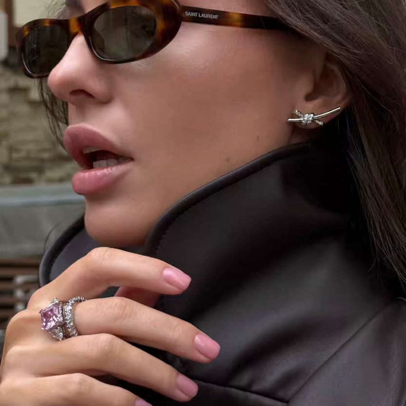 Сережки у вигляді вузлику з фіанітами, чудово підходять на кожен день. Не тягнуть вушко